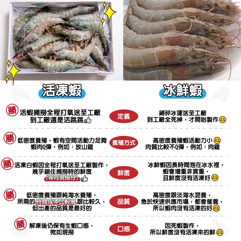 蝦類解凍方式:烹煮前拿出沖水解凍,待蝦體變軟馬上下鍋。