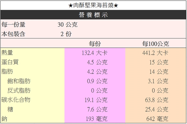 (過敏原:本產品含有芝麻、堅果類、大豆及小麥製品)