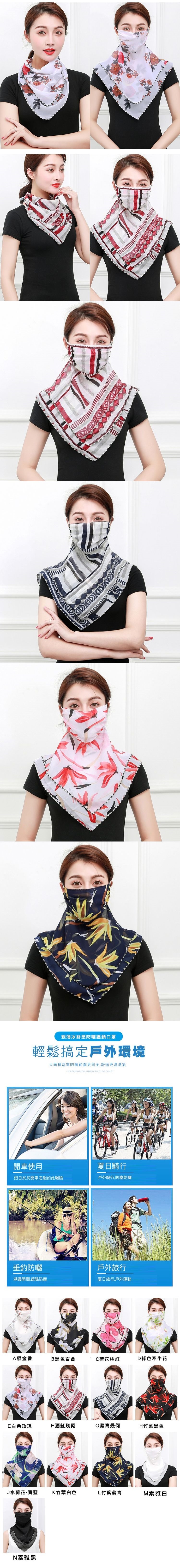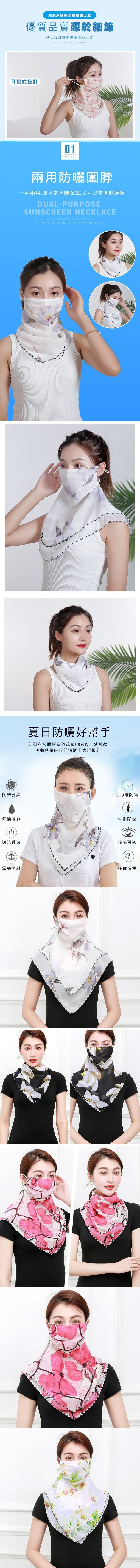 既是絲巾又是口罩,防曬又防空污,耳掛繩可搭配矽膠扣調整,透氣舒適,花色典雅時尚,讓妳防污防曬的同時也好搭配衣服,逛街、上下班、騎行都好用!