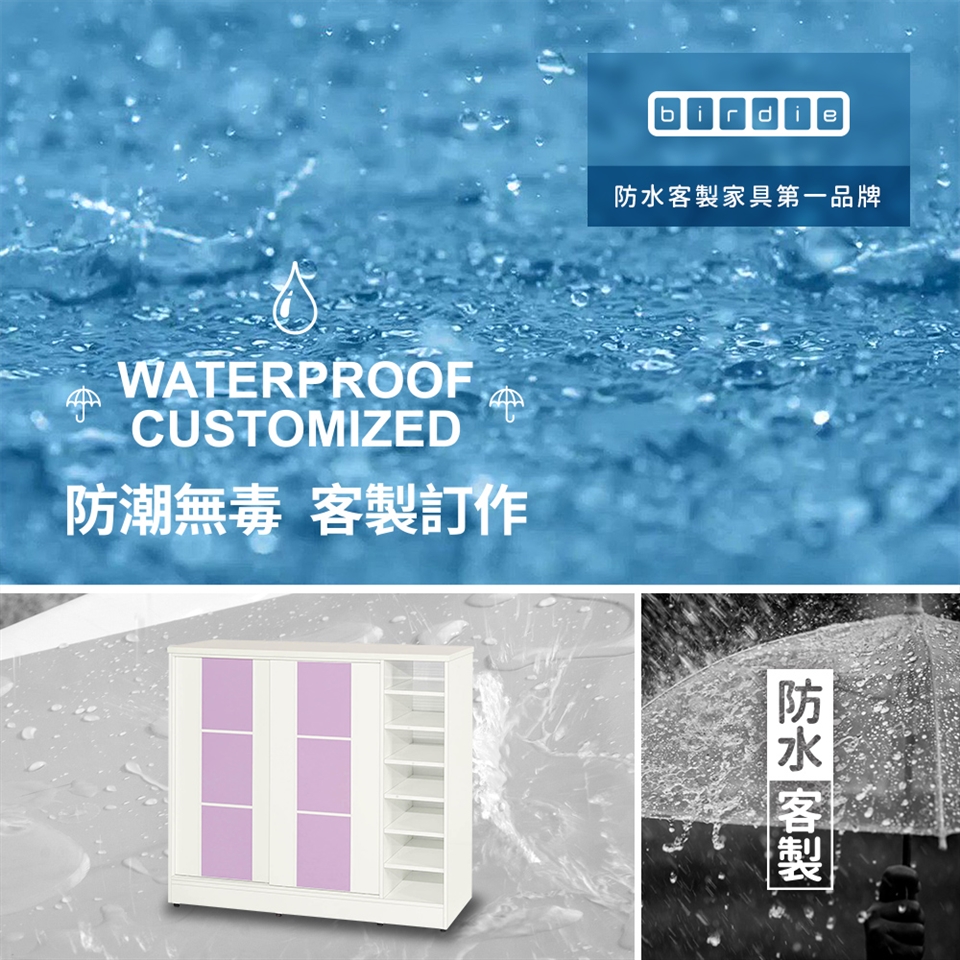 100%徹底防水板材,不怕浸水、適用長期潮濕的環境,可整組水洗清潔更容易,不因潮濕而變形、腐蝕、掀皮;具防蟲蛀抗黴菌特性,防白蟻、蟑螂侵蝕,長久使用也不用擔心塌陷變形!