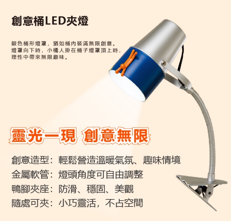 .燈罩頂上小橘人掛在桶邊的創意造型,可輕鬆營造溫暖氣氛、趣味情境