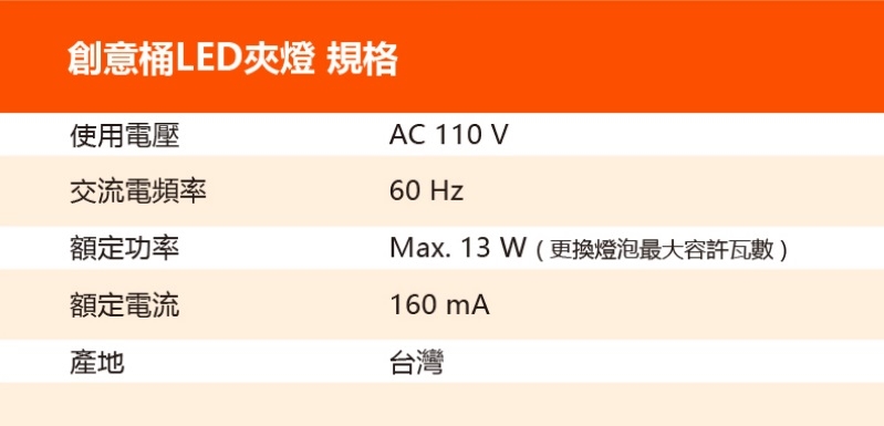.專業鴨嘴型防滑燈夾,可輕鬆安裝於書桌傢俱上,穩固安全不脫落,最大夾持厚度為35mm