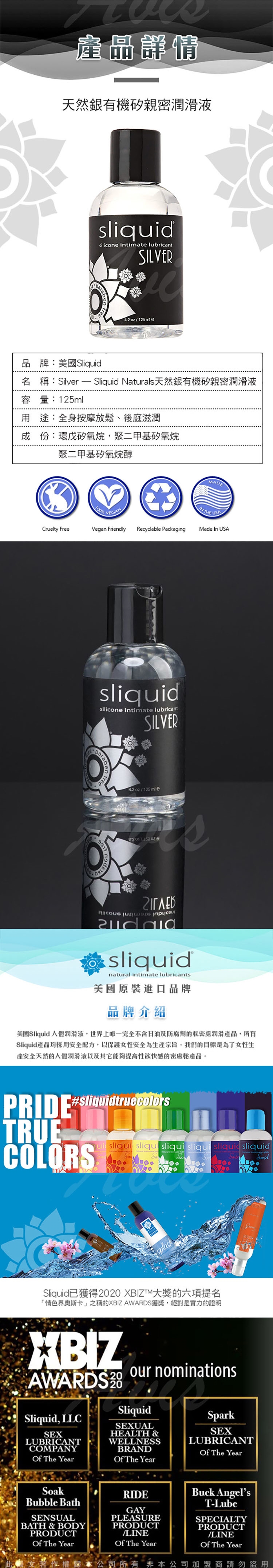 .主商品:美國Sliquid 天然銀有機矽性 親密潤滑液 125ml