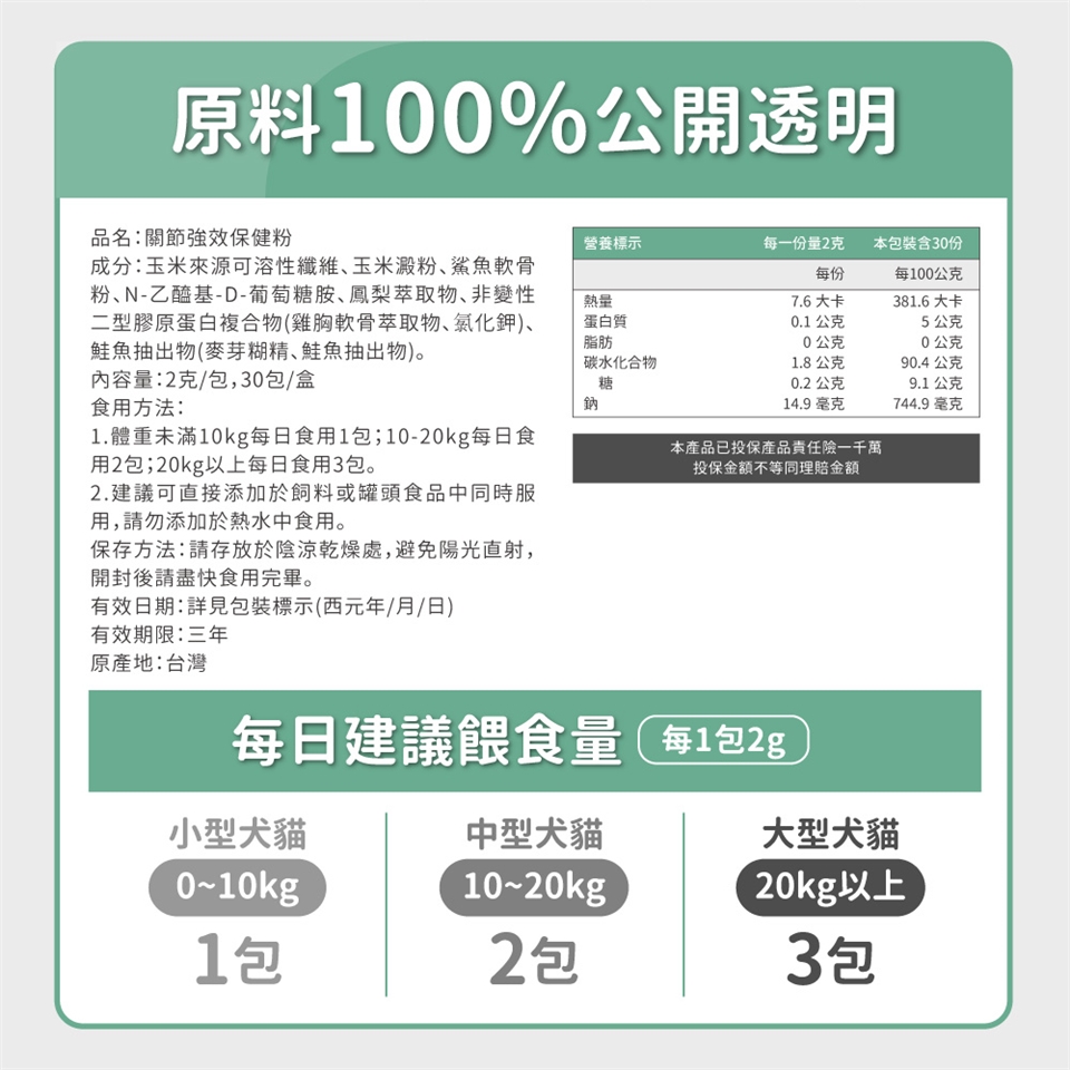 2、毛孩時代的「關節強效保健粉」主成分有哪些呢?