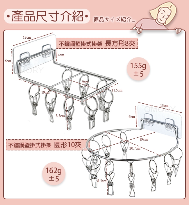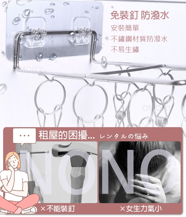 品名:【OMORY】小型免釘無痕不鏽鋼衣夾