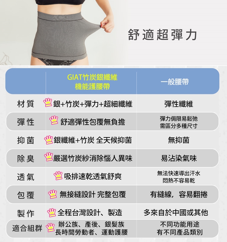 【竹炭銀纖維Ag+無縫腰帶(男女適穿)】