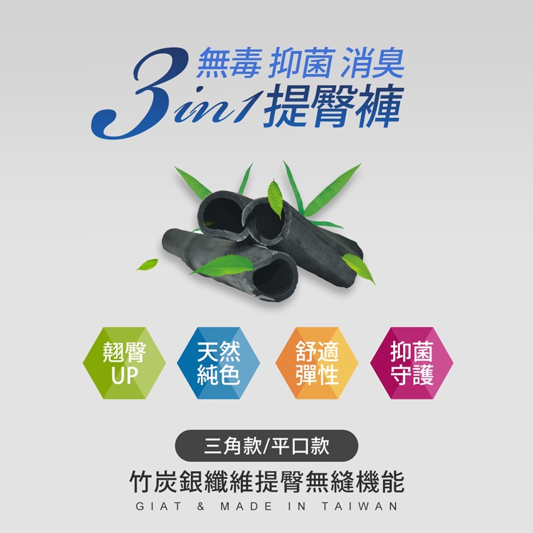 【竹炭銀纖維抗菌機能無縫提臀內褲】