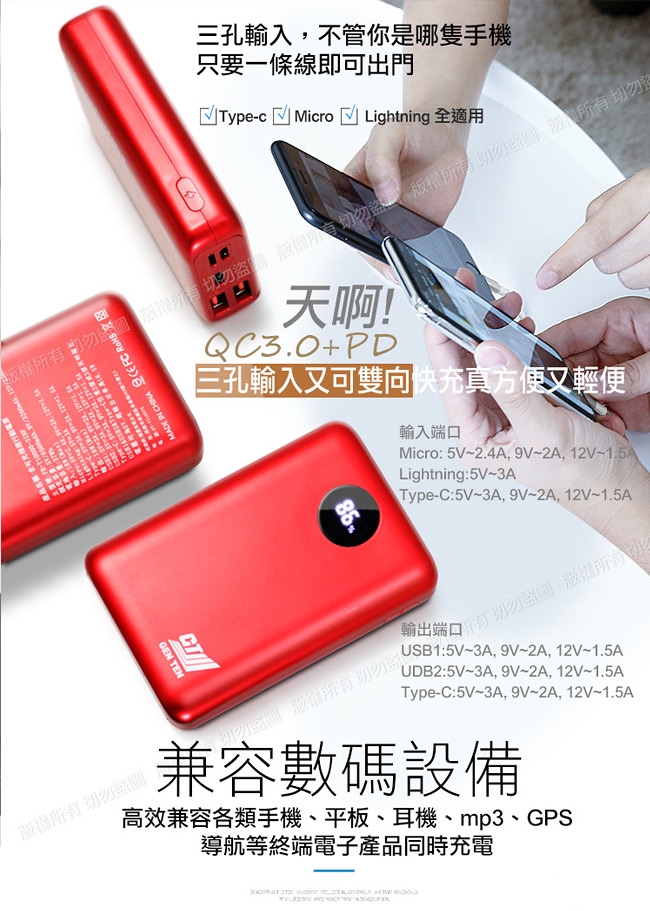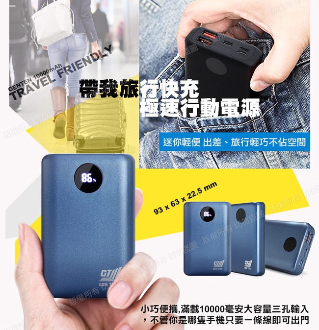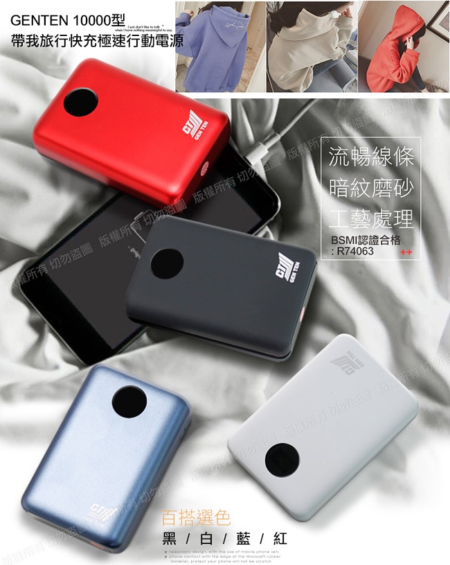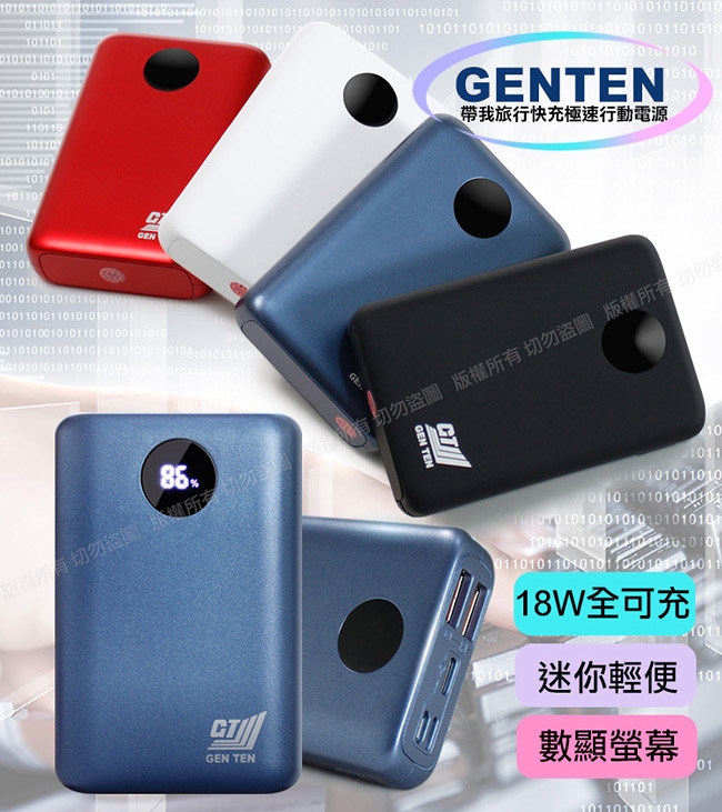 GENTEN 10000型 PD快充+QC3.0快充極速行動電源