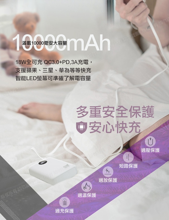 18W全可充 QC3.0+PD,3A充電支援蘋果、三星、華為、等等快充