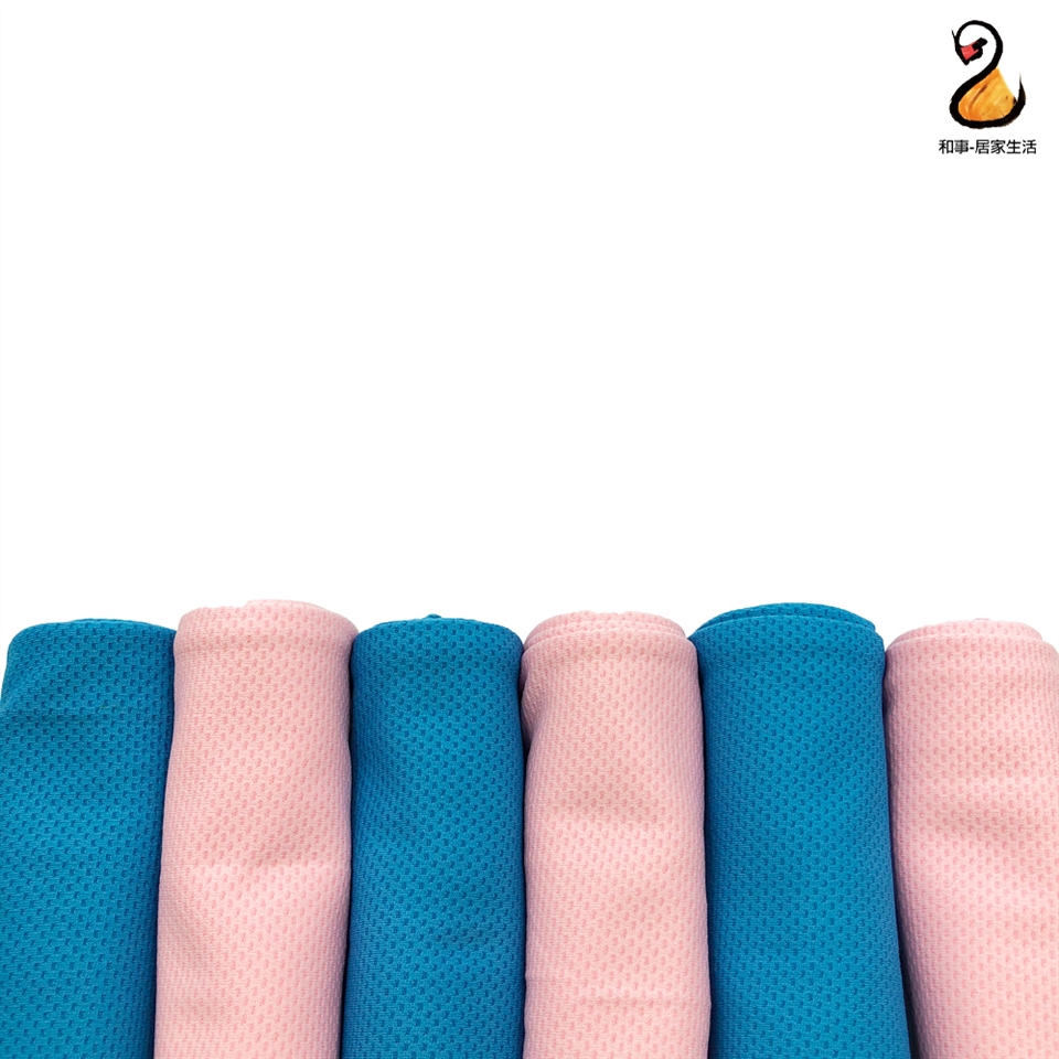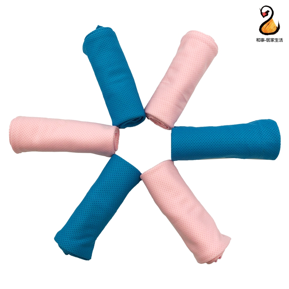 A:無論熱水、冷水,甚至汗水,只要浸濕後擰乾,再甩幾下後,即可達到降溫效果。