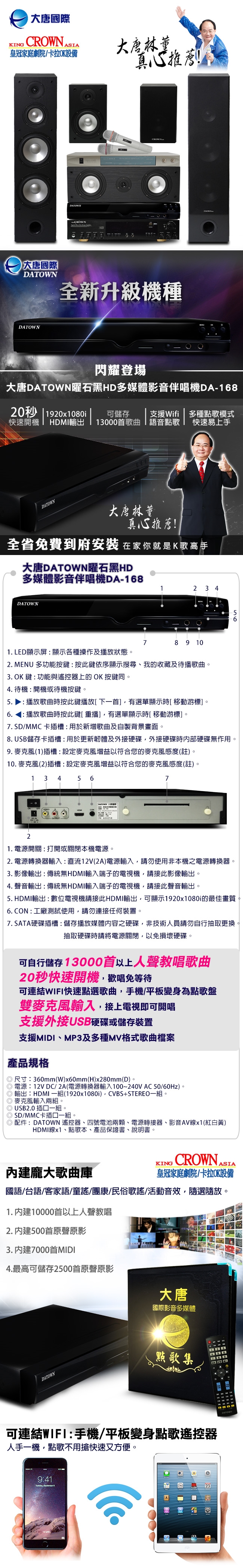 訂單成立後,將有專人與您約定時間將其它主件,配送到府完成安裝,如欲自行約定裝機時間請電(02)2999-0618;歡唱鑑賞期內,因卡拉OK伴唱組,屬精密機器,整新不易,請務必保持單機、喇叭及配件(含紙箱)之完整性,不得有括傷、缺角或遺失等損壞,以確保您的購物權益;於鑑賞期內如有任何使用上的問題,請務必先撥打保固卡上之免付費服務專線,我們將竭誠的為您服務,謝謝。