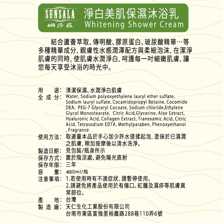 取適量本品於手心加少許水搓揉出泡沫,塗抹於已濕潤之肌膚,稍加按摩後以清水洗淨。