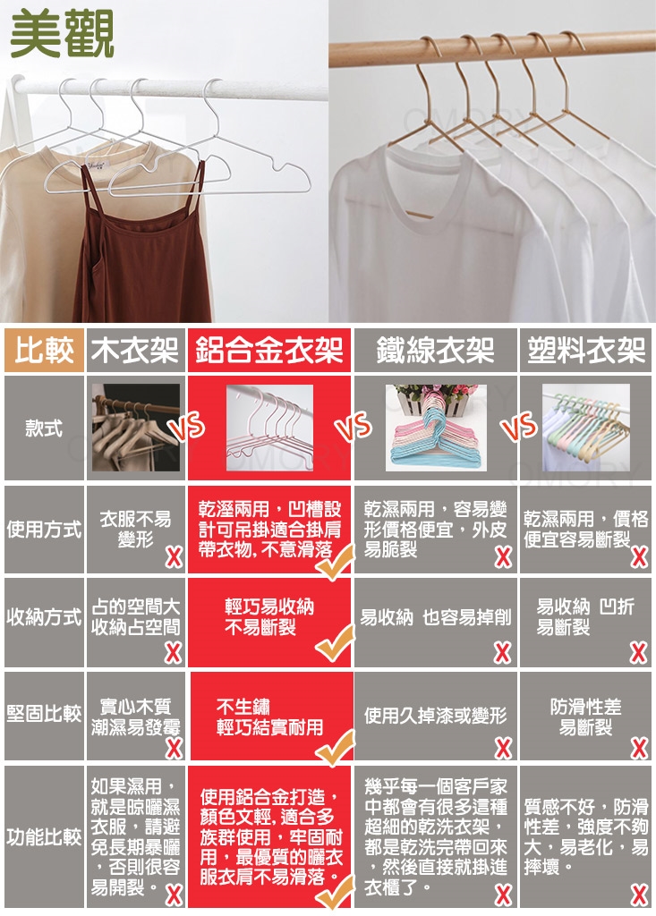 品名:【OMORY】簡約鋁合金衣架(10入)