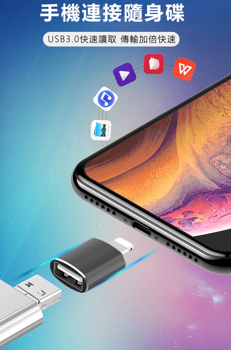 ◆ Lightning轉USB3.0 可連接隨身碟/讀卡機/滑鼠/鍵盤/遙桿 等
