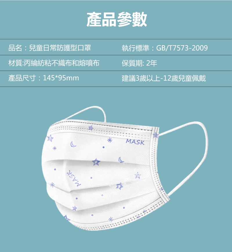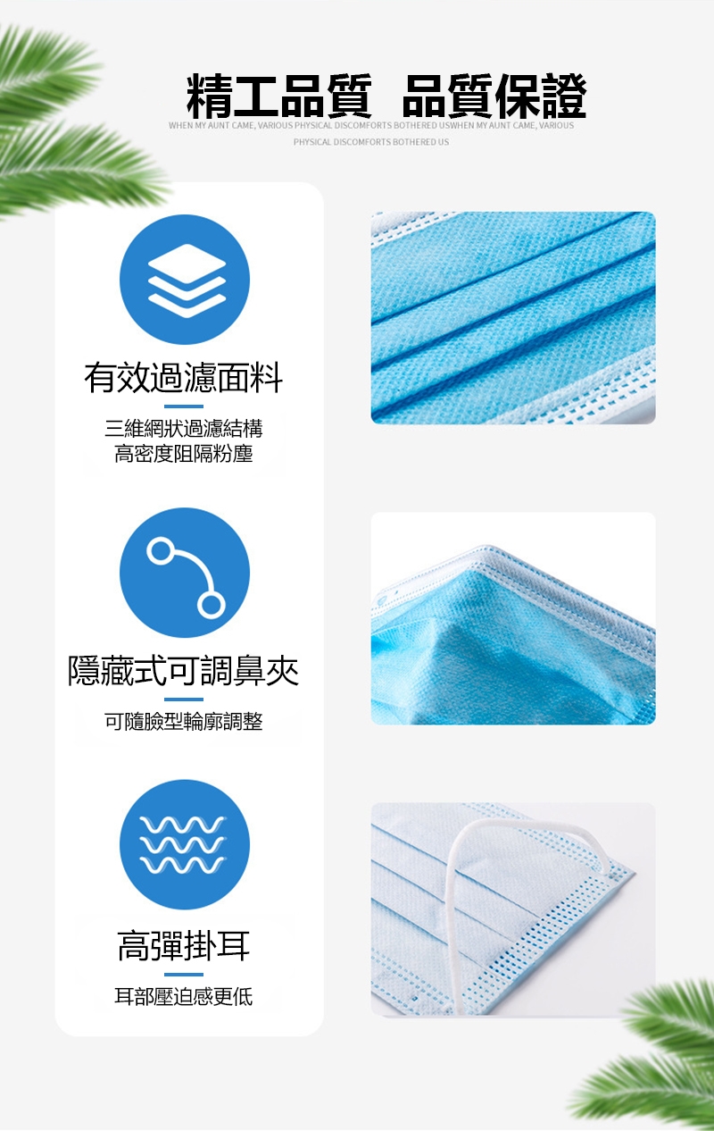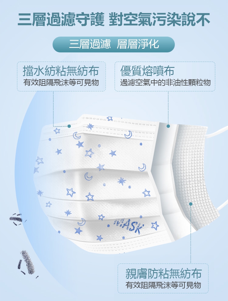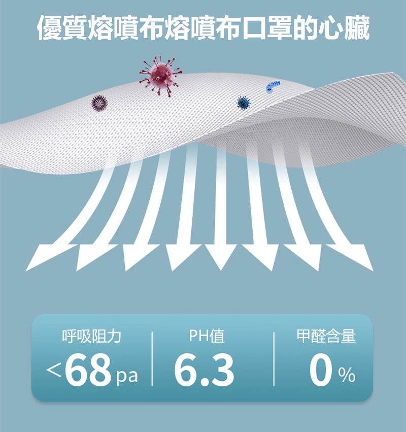 材質:第一層親膚不織布 第二層熔噴布 第三層拒水不織布