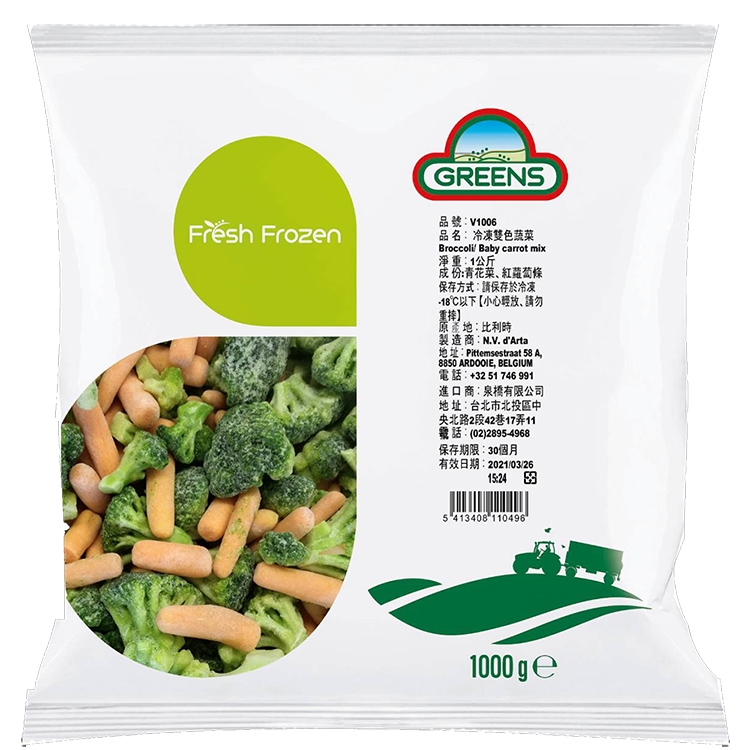 內容物名稱(成分):青花菜、甜碗豆、四季豆、胡蘿蔔、黃蘿蔔、紅甜椒、洋蔥丁