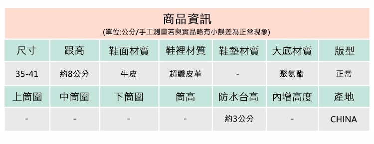 2.鞋類商品依功能及用途之不同,鞋底各有其止滑係數之個別不同,使用鞋類商品請用於正常平坦之路面,非雨鞋或雨靴類商品,請避免穿著於下雨濕滑路面上行走。