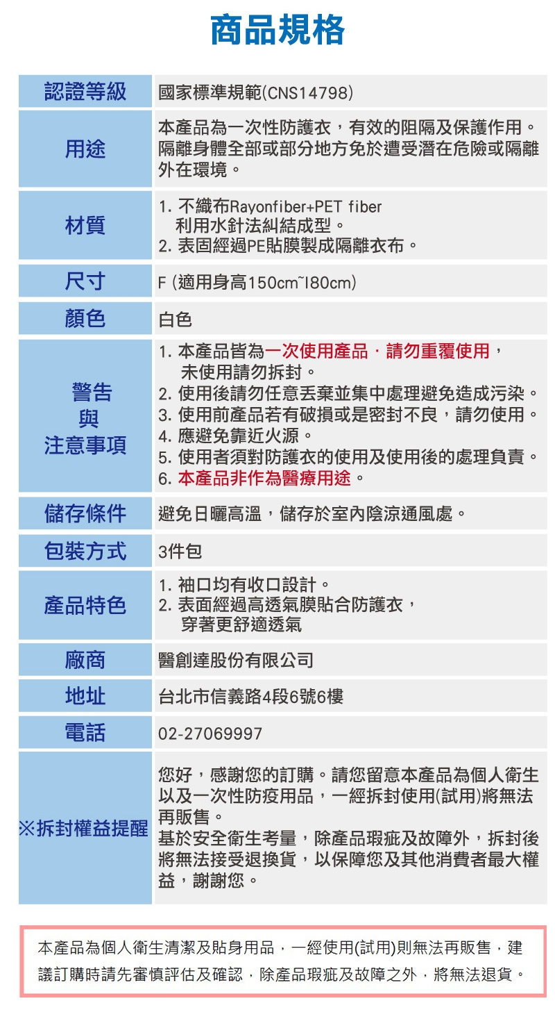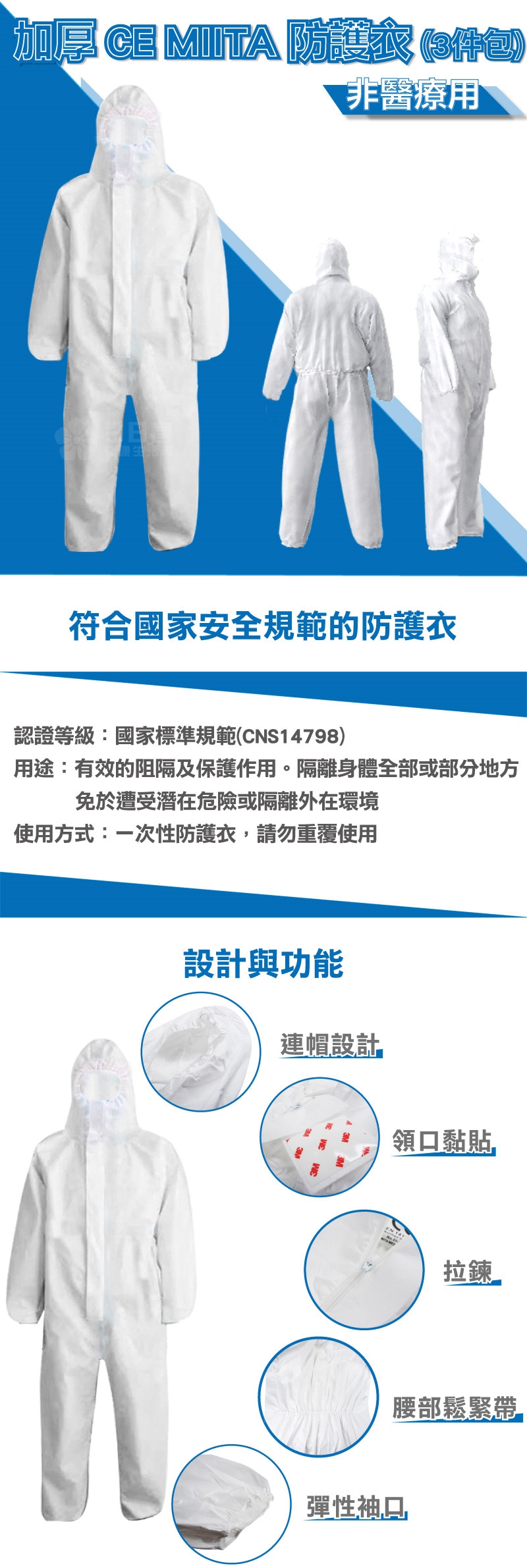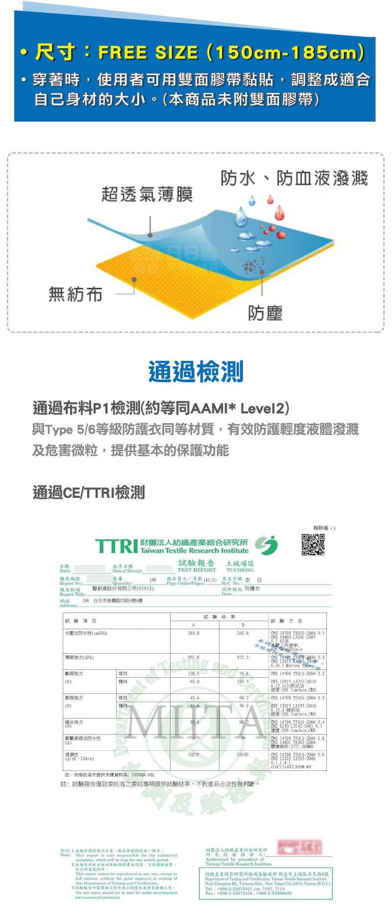 與Type 5/6等級防護衣同等材質,有效防護液體血液潑濺及危害微粒