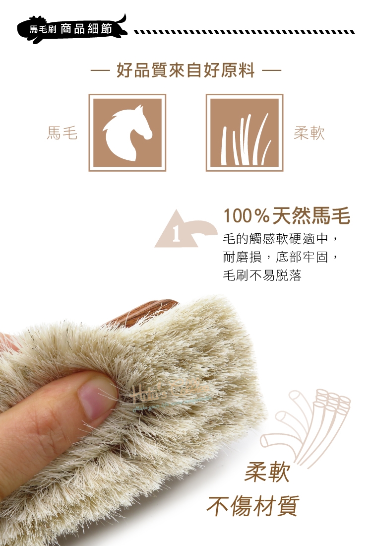 日常清潔養護好幫手,100%天然馬毛,
