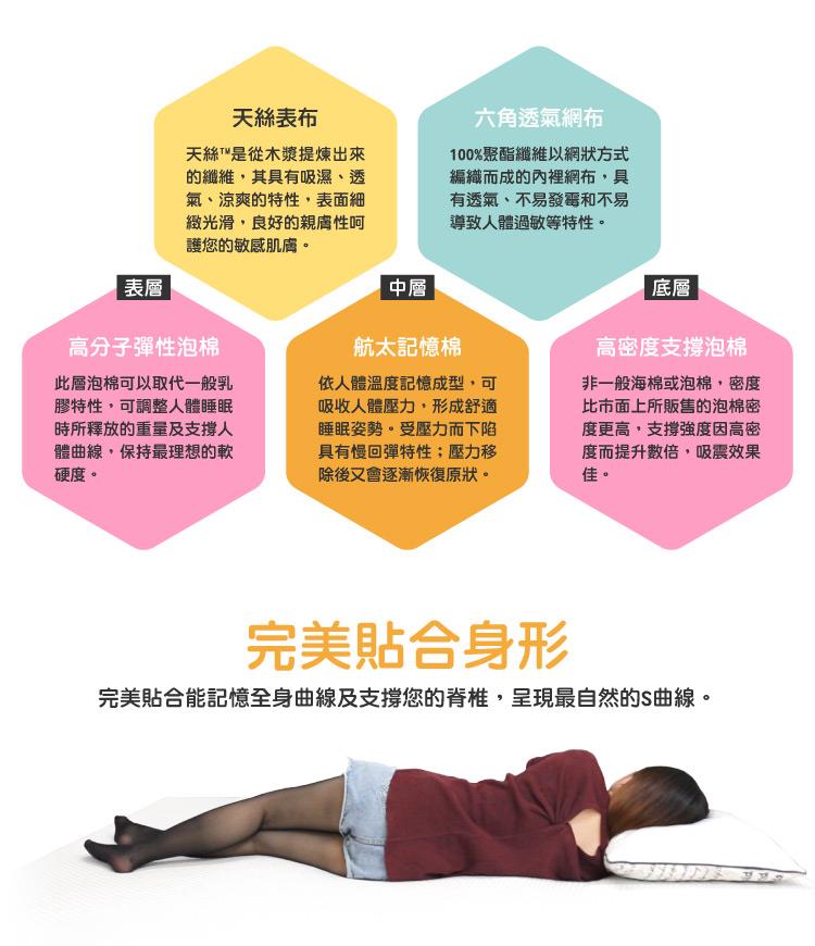 分區護脊 天絲纖維布套透氣孔、設計卓越濕度調控、不易發霉又透氣