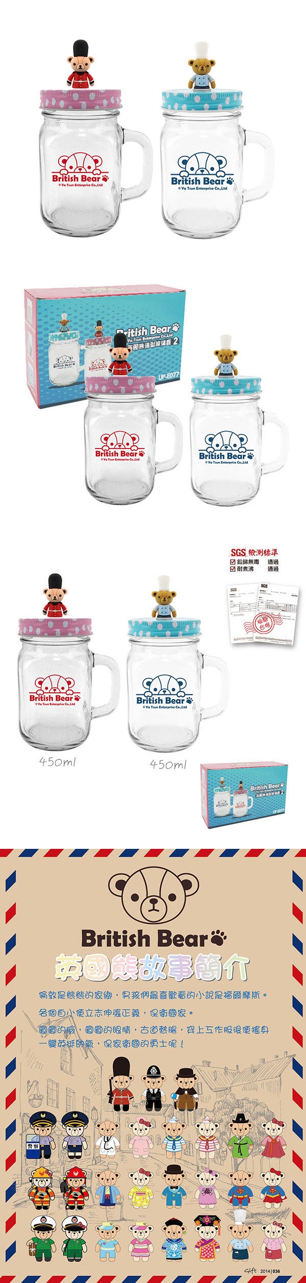 英國熊 造型玻璃瓶450ml 2入 UP-E077