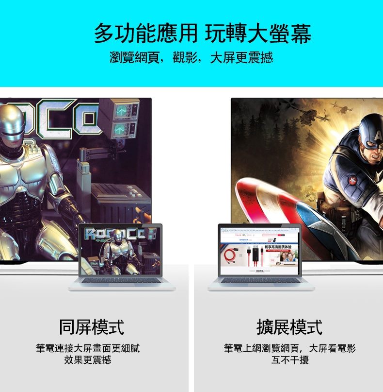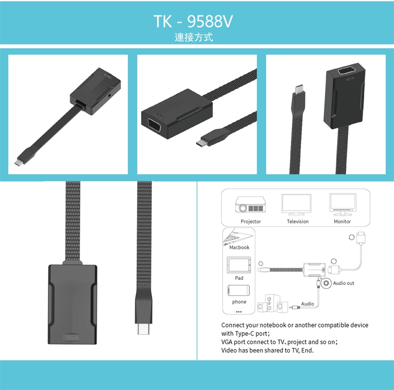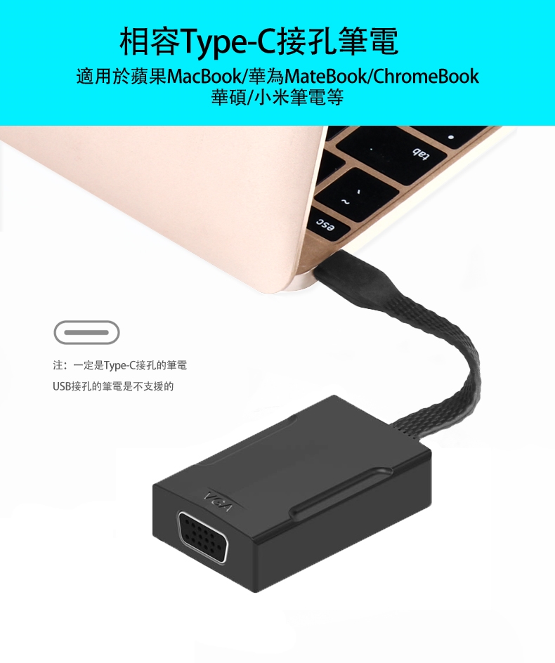 ◆ 專為Type-C筆電、平板、手機等轉接螢幕或投影機使用