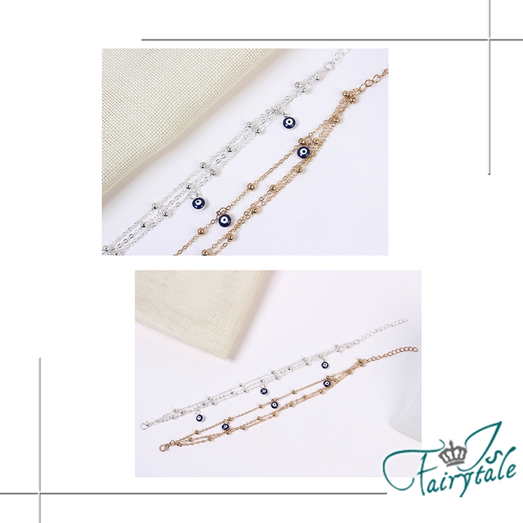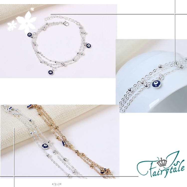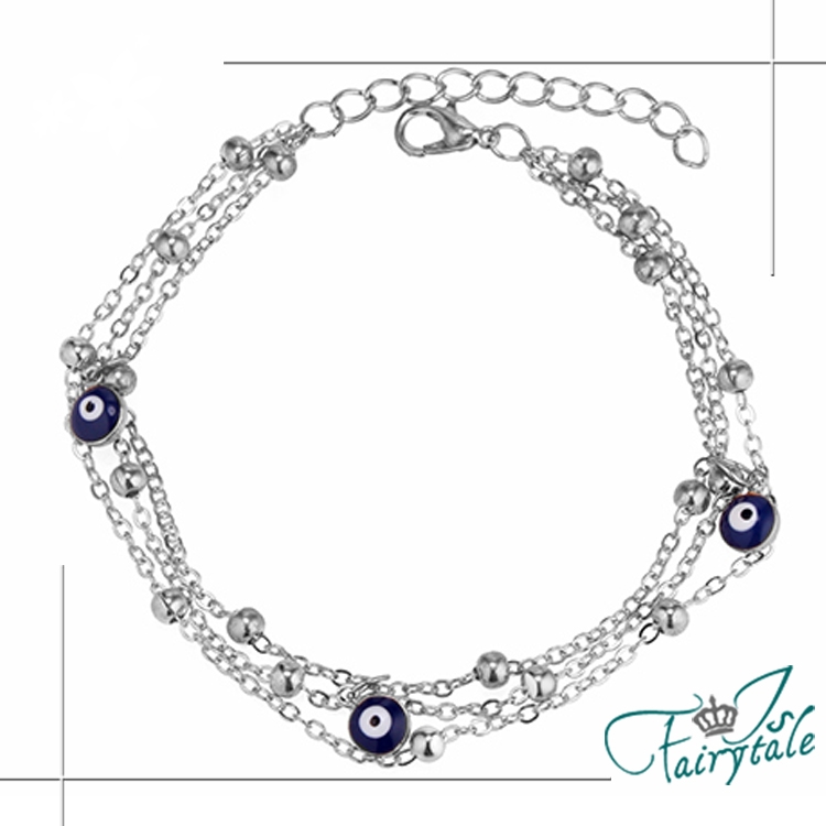 民族風藍色串珠搭配三層手鍊,多層次的風格更添時尚,