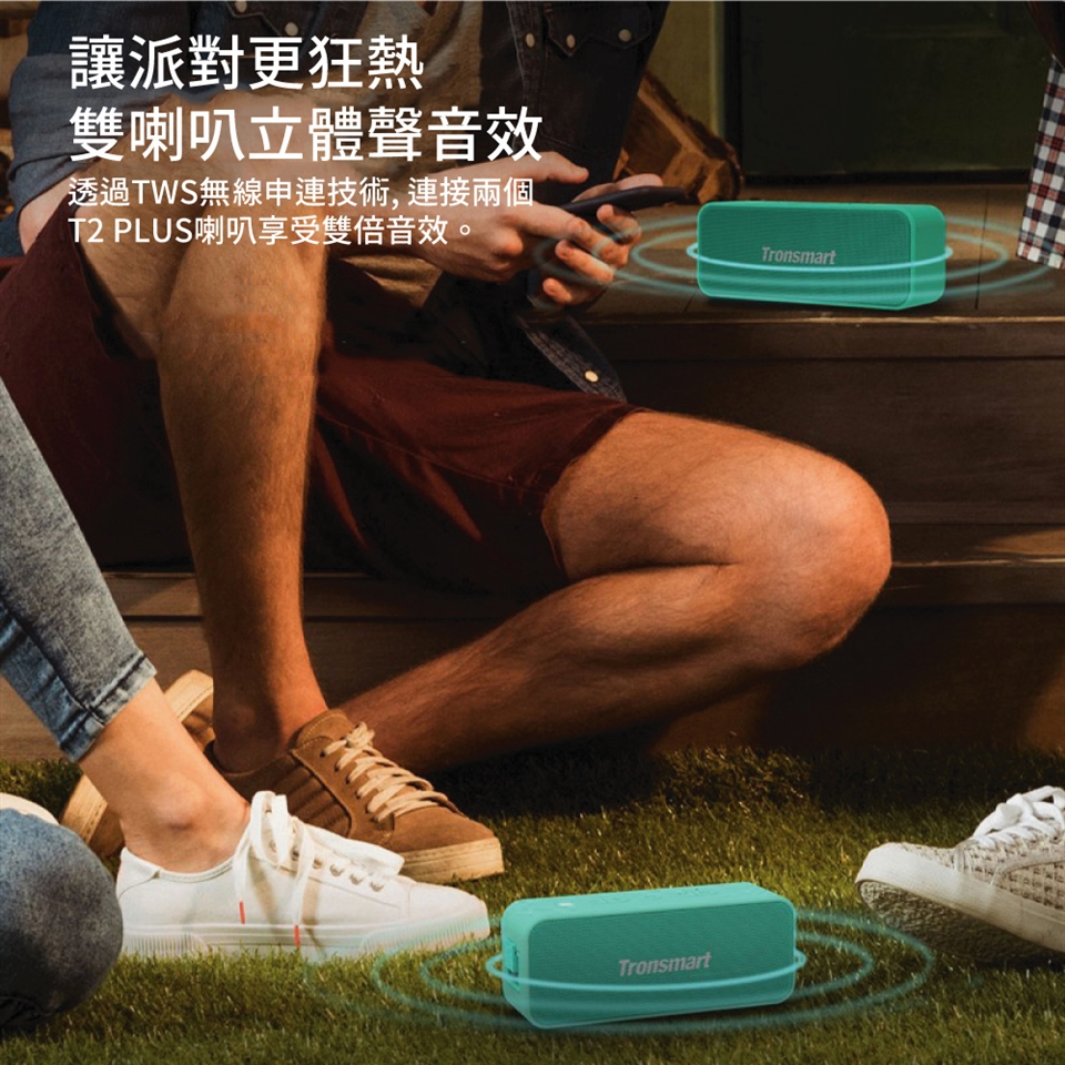 透過TWS無限串連技術, 連接兩個喇叭享受雙倍音效