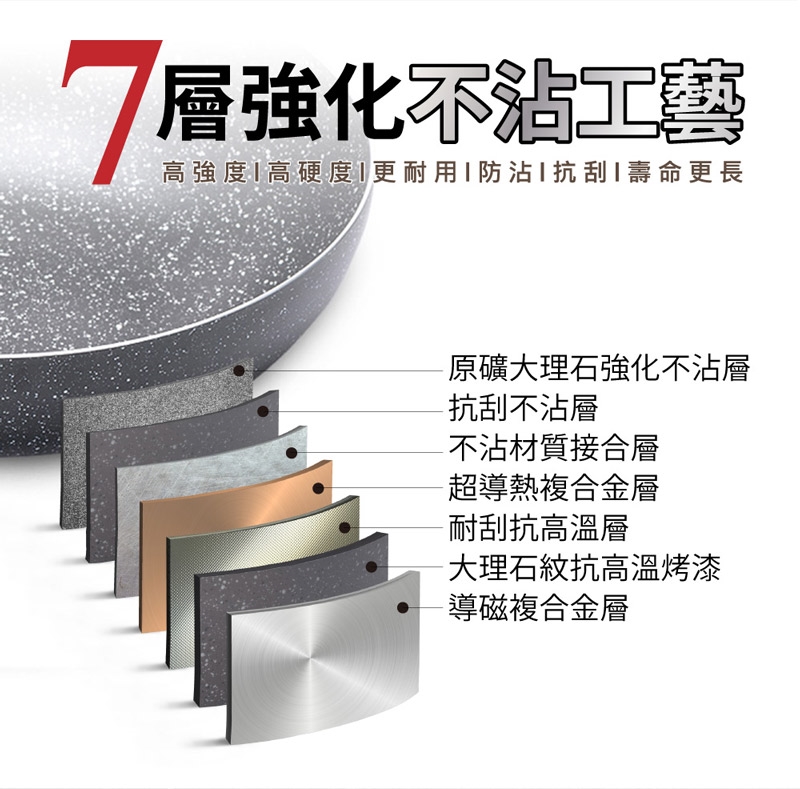材質:鍋身/高級合金+食品級不沾材質 (耐熱260℃)