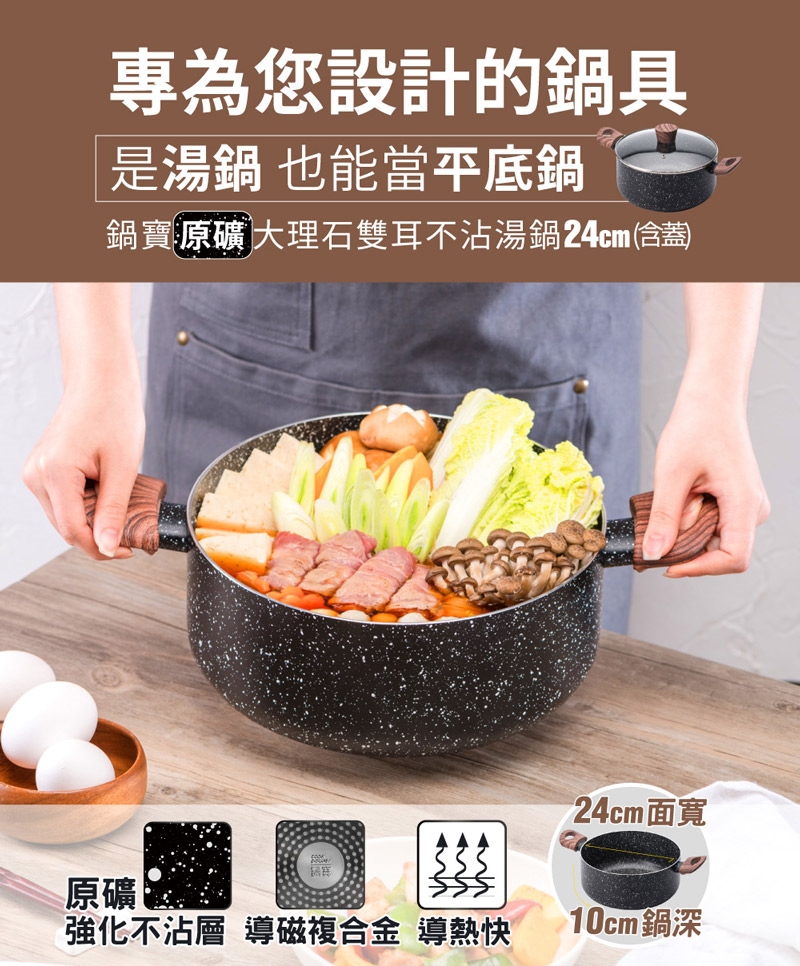 品名:鍋寶 原礦大理石雙耳不沾湯鍋24CM