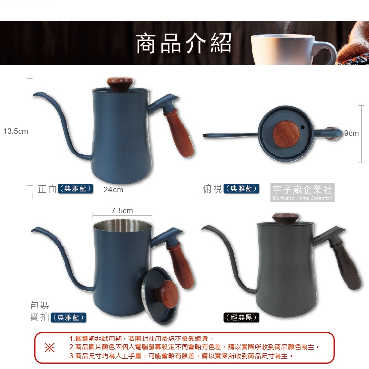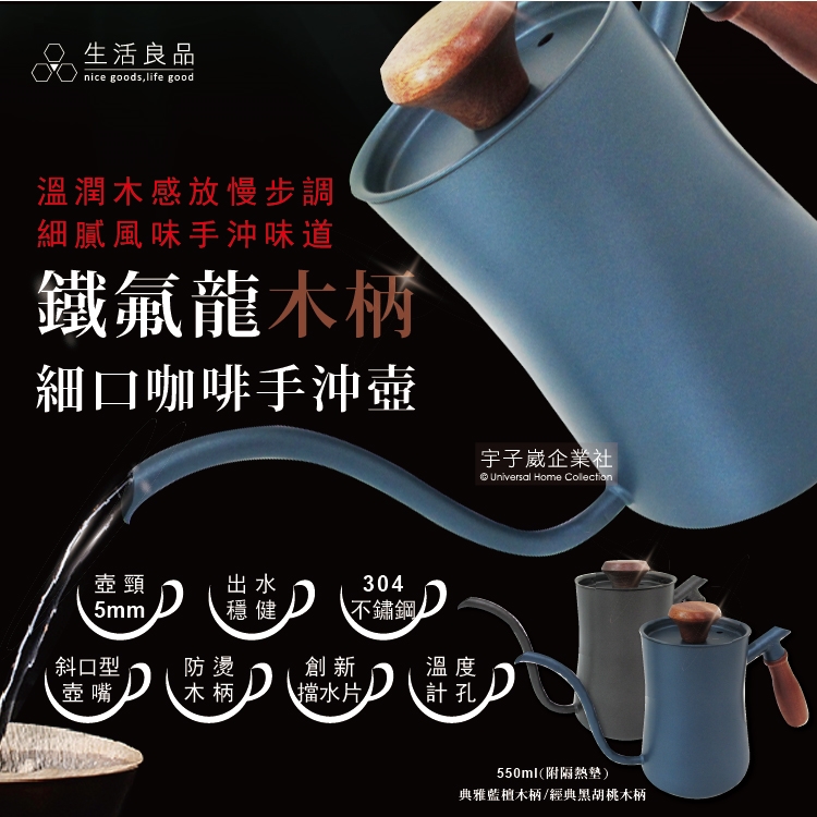 ●品名:鐵氟龍木柄細口咖啡手沖壺