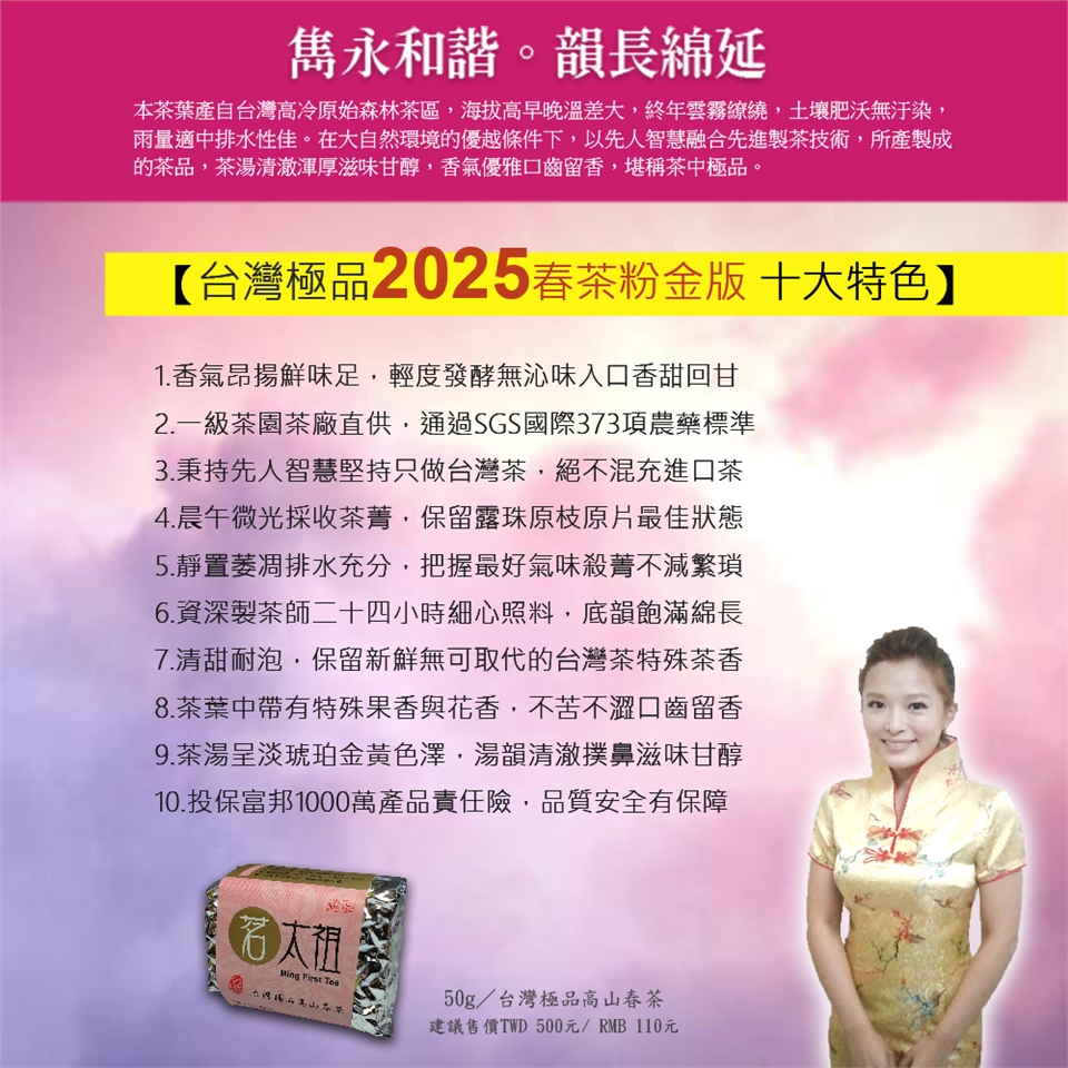 【茗太祖】台灣極品高山春茶真空粉金版(50g/包)x4