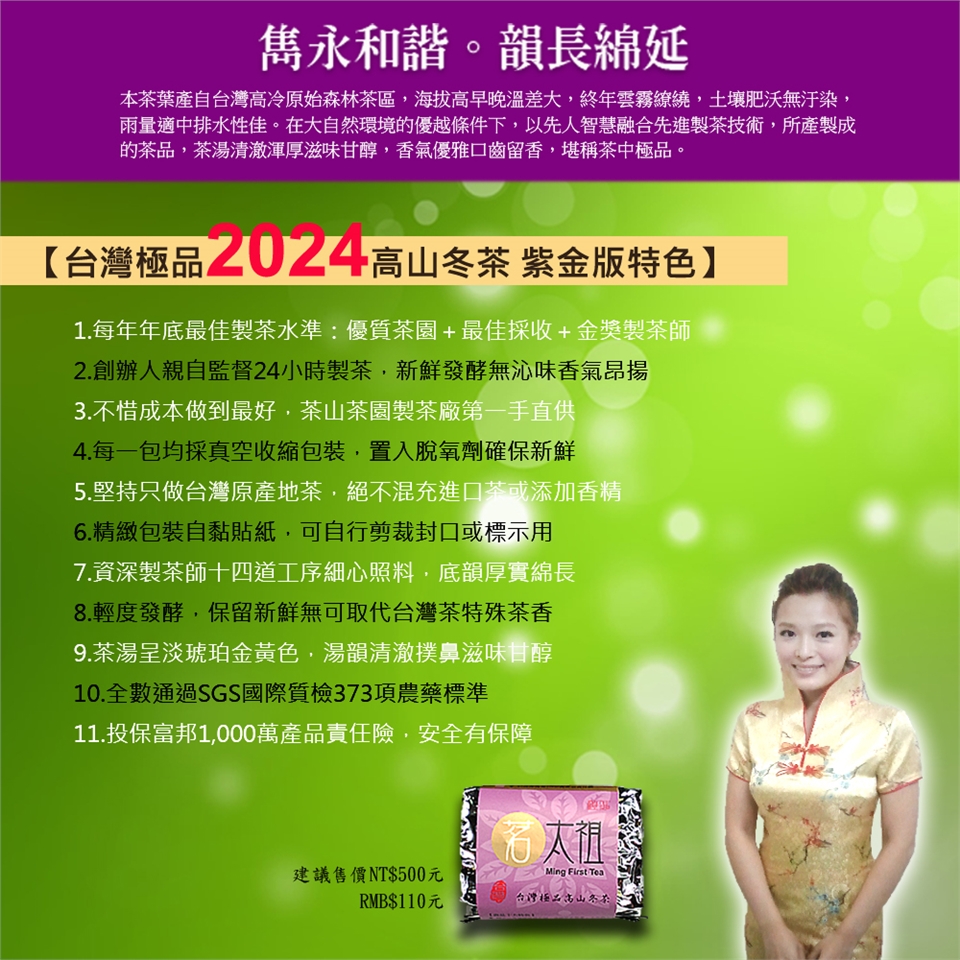 【茗太祖】台灣極品高山冬茶真空紫金版(50g/包)x4