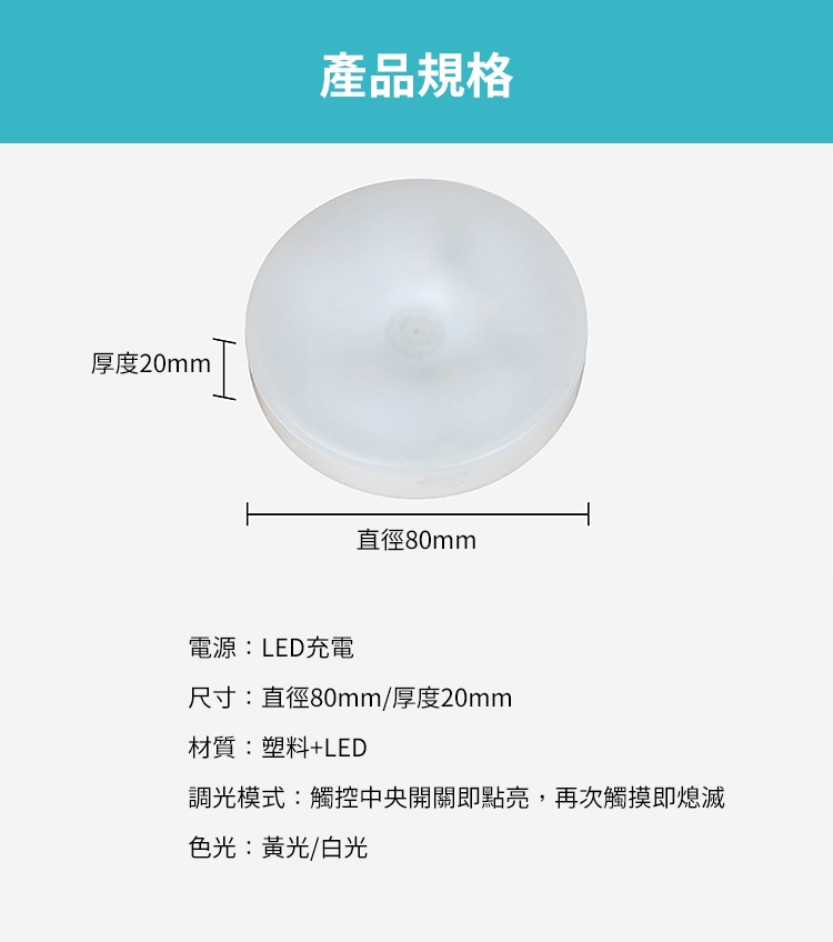 調光模式:觸控中央開關即點亮,再次觸摸即熄滅