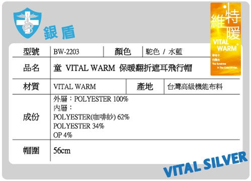 VITAL WARM 保暖翻折遮耳飛行帽讓小朋友呈現出可愛又俏皮的感覺。
