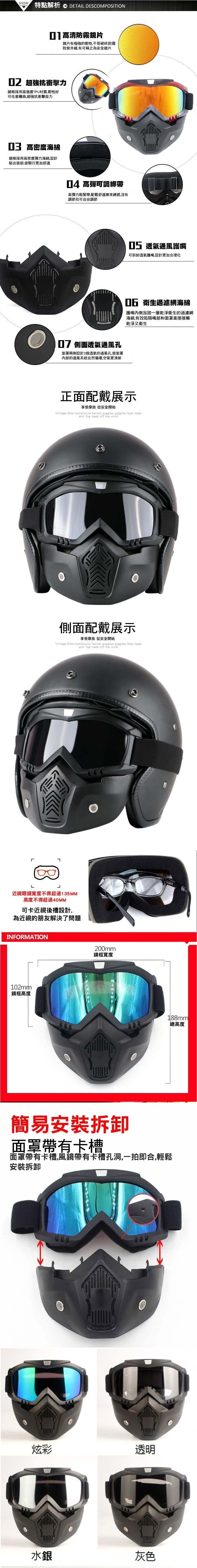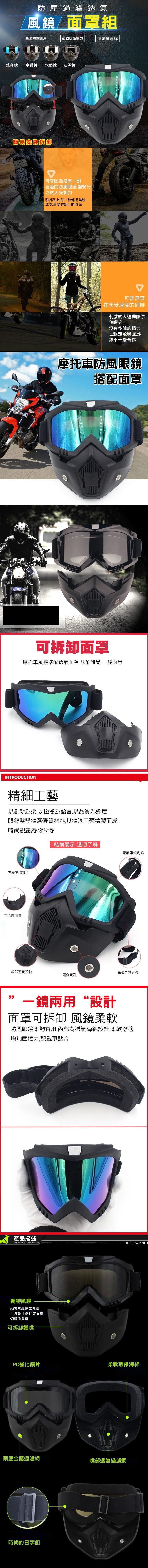 透氣過濾風鏡面罩,過濾通風系統,防止吸入有害物質,面罩可依需求自由拆卸,保護眼睛同時還能防風沙。全視野高清眼罩,抗陽光。防衝擊高韌性超耐用,帥氣有型又實用。