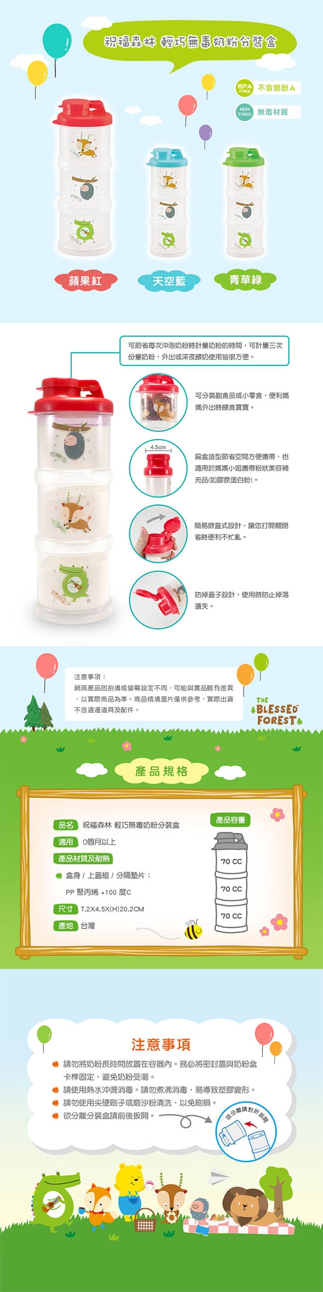 . 品名:祝福森林 輕巧無毒奶粉分裝盒