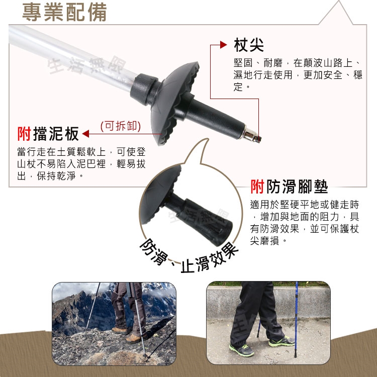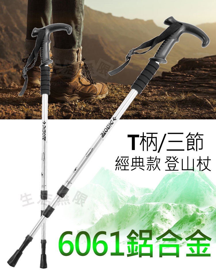 品名:【生活無限】登山杖/經典款三節 6061鋁合金/T柄