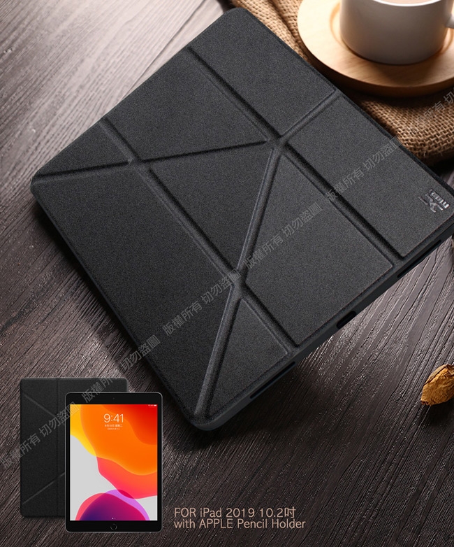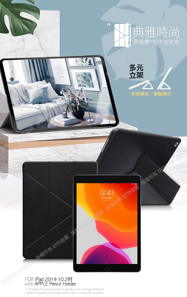 Xmart for iPad 10.2吋 2020 典雅時尚帶筆槽Y折牛皮皮套