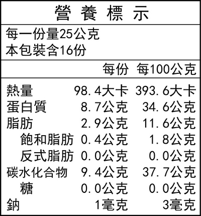 ※ 本產品含有黑芝麻;對其會過敏者,請謹慎食用。