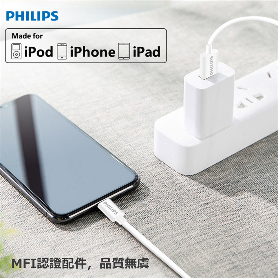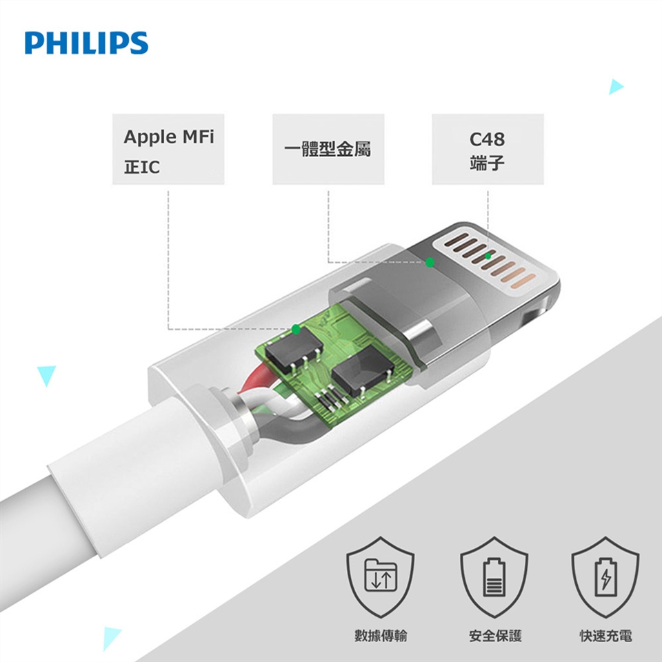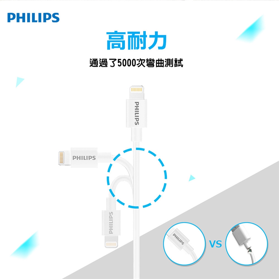 【PHILIPS飛利浦】100cm lightning手機充電線 DLC4547V