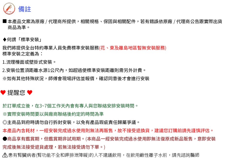 本商品一經過水使用則無法再販售,故不接受退換貨,訂購前請先確認評估