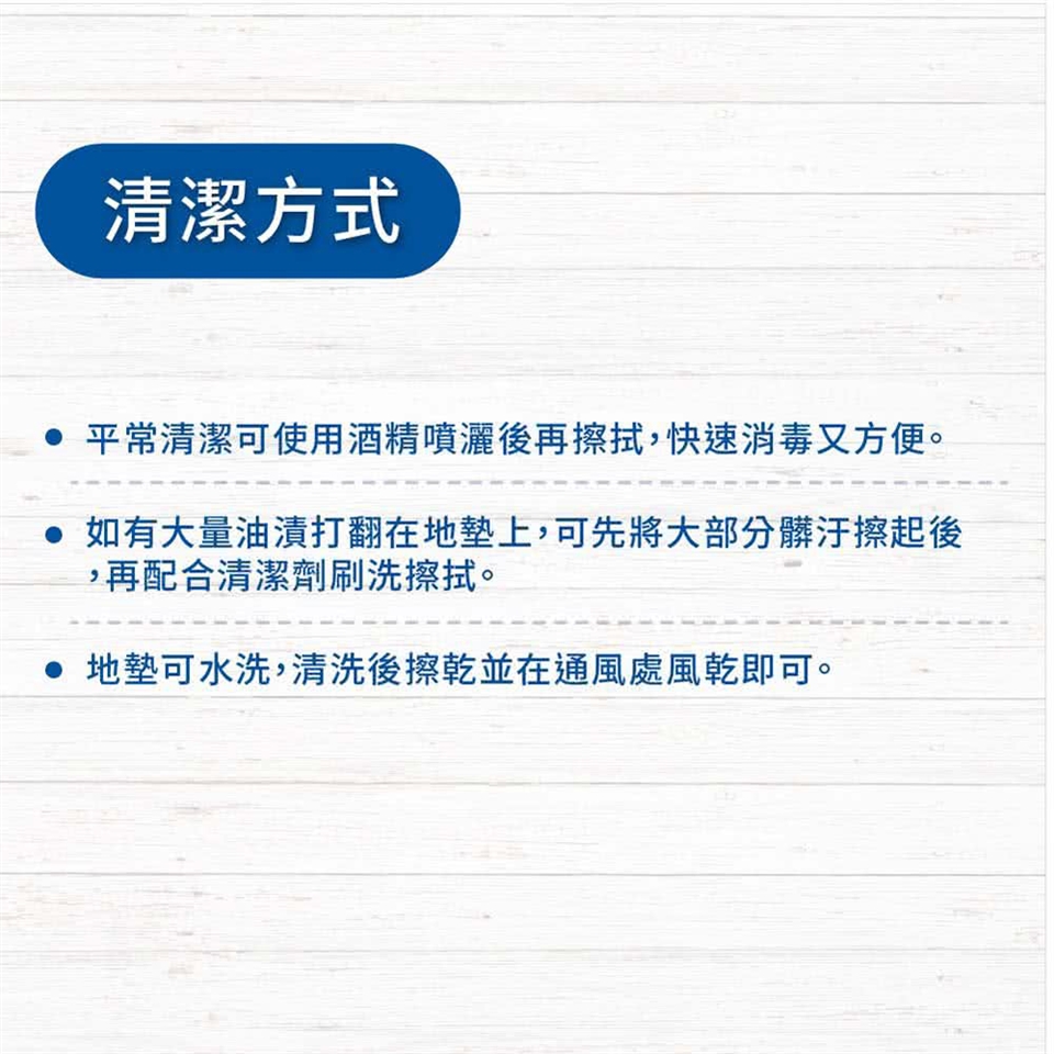 3.地墊如暫時不使用時,可用原本的包裝塑膠袋裝起,避免灰塵跑入地墊中。