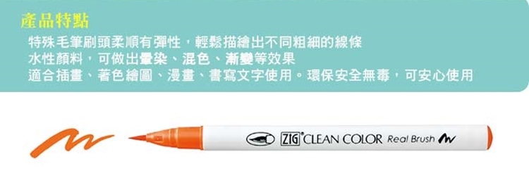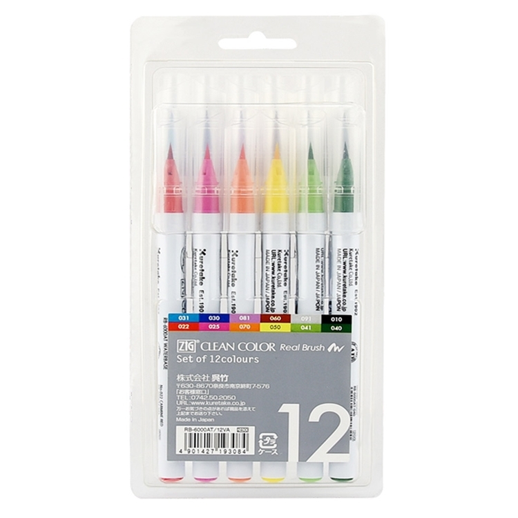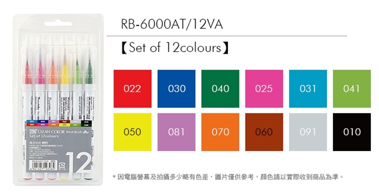 ●【品名】日本吳竹あかしやKuretake ZIG CLEAN COLOR彩繪毛筆畫筆RB-6000AT/12VA彩繪筆(12色水性顏料;彈性刷毛)real brush