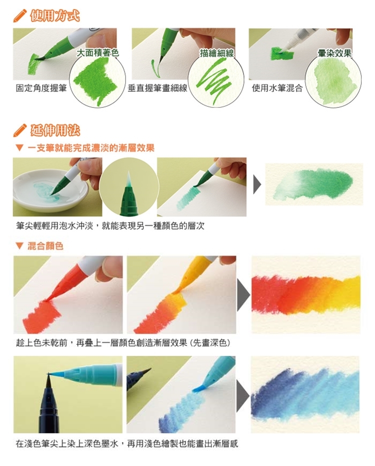 ●水性顏料可以做出暈染、混色、漸變等效果