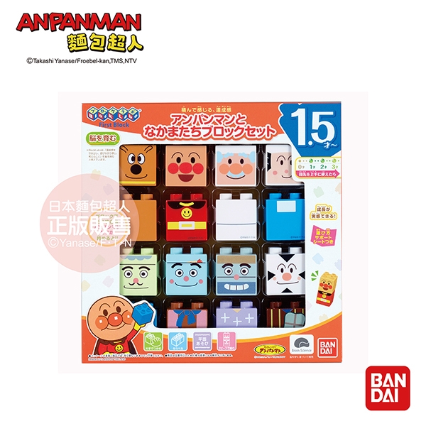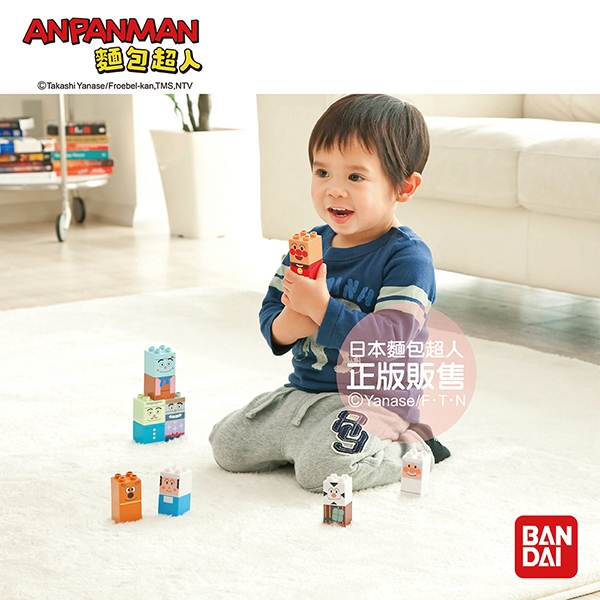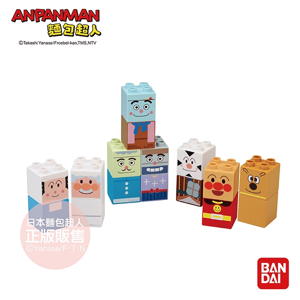 內含麵包工場成員、丼飯三人組、飯糰人及起司圖案的積木,