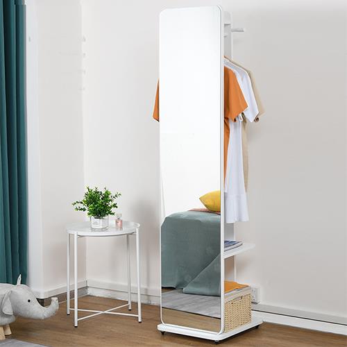 此外底部活動輪的活用設計移動到任何您想要放置或使用的地方皆適宜,吊掛在後方的衣物與收納的物品也能靠活動輪輕鬆轉身,隨時都能照照鏡子讓您美美的出門。
