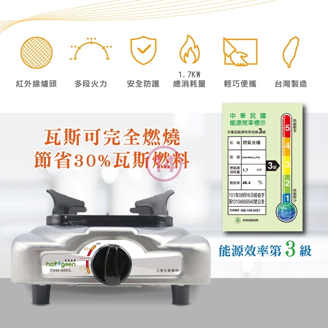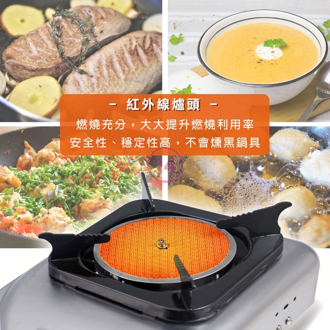 ◎紅外線爐頭:燃燒充分,大大提升燃燒利用率,安全性、穩定性高,不會燻黑鍋具