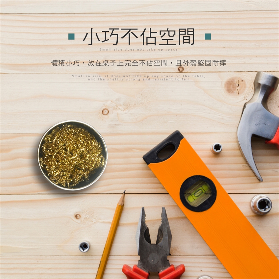 HANLIN-CLN 焊槍烙鐵銅絲清潔球盒 使用時搭配焊油能更有效清潔, 恢復焊槍電烙鐵頭效能!! 工欲善其事必先利其器!! 您是否使用焊槍電烙鐵時~常常覺得難焊接?? 焊錫無法附著在焊槍上?? 很多原因是 因為焊槍電烙鐵頭已經變黑氧化層導致效能變差!! 產品特色: 1.高品質材料要求,使用純銅材料設計 2.提高效率,不需加水即可清潔 3.有效防止焊槍電烙鐵氧化,延長使用壽命 4.恢復焊槍電烙鐵頭效能!! 5.內螺旋設計,不易鬆散 6.360度全方位快速清潔 7.小巧堅固不佔空間 產品規格: 品牌:HANLIN 品名:焊槍烙鐵銅絲清潔球盒 (使用時搭配焊油能更有效清潔) 材質:純銅 重量:50g 尺寸:6.5x6.5x3.8cm |