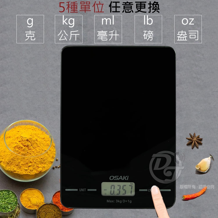 ◎品名:OSAKi廚房烘焙液晶電子料理秤 OS-ST603
